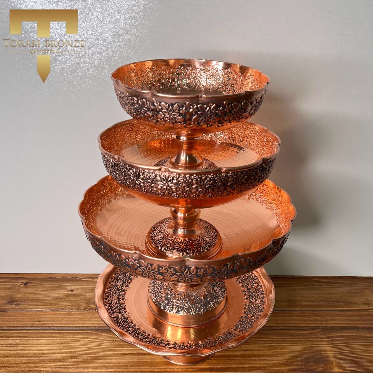 سرویس پذیرایی مسی سه پایه طرح گلبرگ