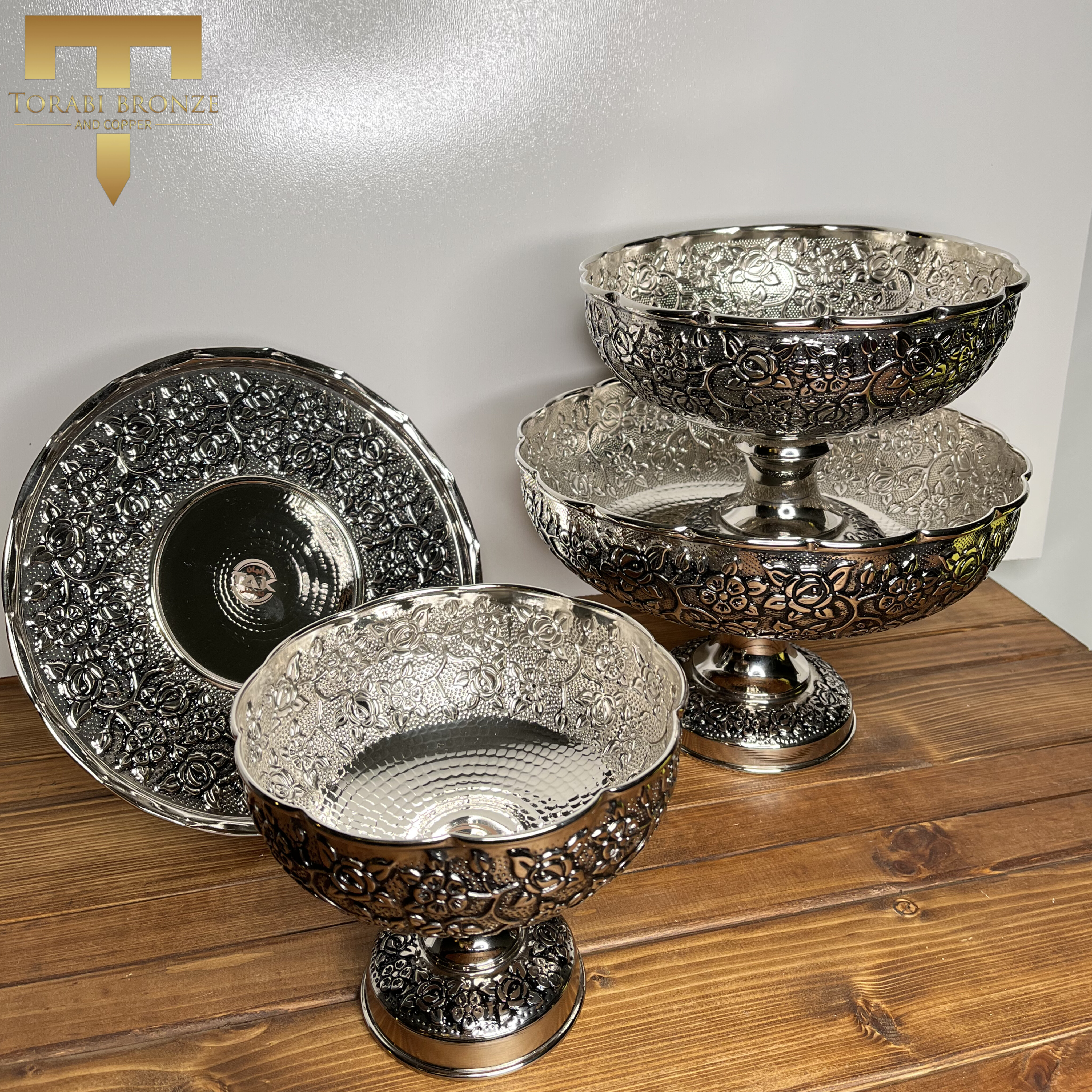 سروی پذیرای 4 تیکه پایه دار گلبرگ کروم