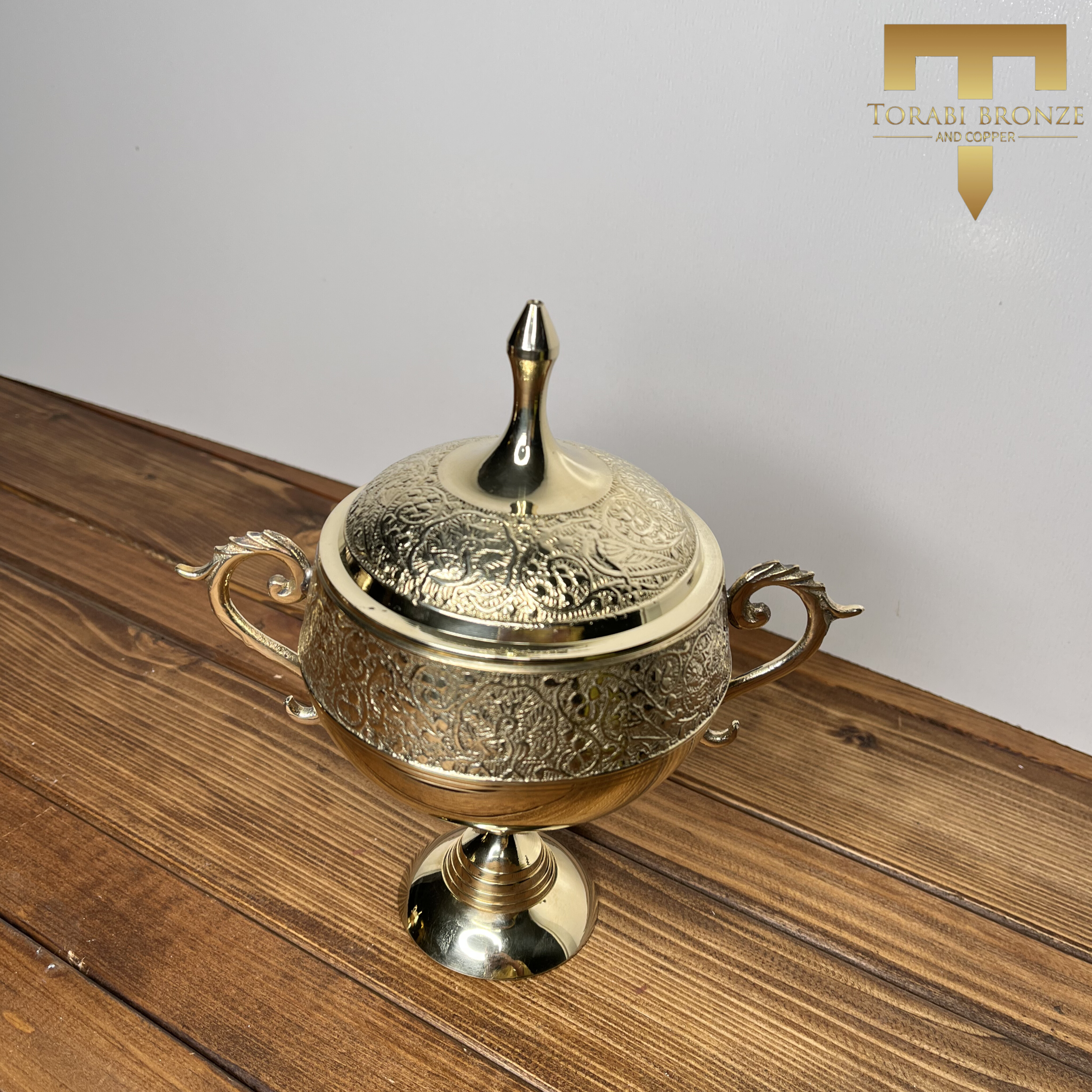 قندان تک پایه طاووس دسته دار بسیار زیبا و با کیفیت سایز 5 اینچ و ارتفاع 19 سانت وزن محصول به صورت تقریبی میباشد لطفا قبل از ثبت سفارش از موجودی ان استعلام بگیرید.
